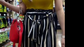 巨乳・お尻・美脚 意識高い系奥様を下から逆さ撮り!妖艶な黒ストと淡色チクビが映り込みました