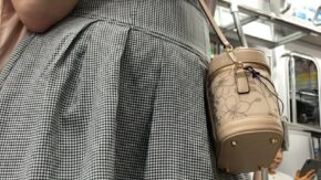 盗撮風・パンチラ・逆さ 【放課後の眺め144】二人組の制服JKの生足を電車内で観察!