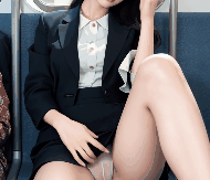 AI画像・CG画像 〖AI動画〗通勤電車、微熱の視線。濃紺スーツの彼女が見せたスカートの中の一瞬