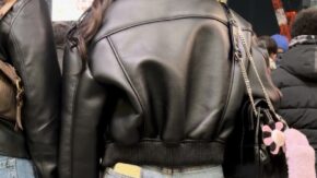 巨乳・お尻・美脚 タイトスカート女子コレクションVol.54 ピンクのワンピースのふっくらお尻のお姉さんとレザーのパンストミニスカの美尻お姉さん
