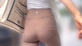 巨乳・お尻・美脚 半ケツパンティを見せる極上尻を堪能!露出狂のようなスパッツから美巨尻をムニュらせ庶民を挑発!
