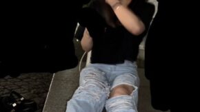 「やめて!やめて!」拒絶するもラッピング固定でヤラレ放題 巨乳美女のおっぱいにぶっかけトレーニング